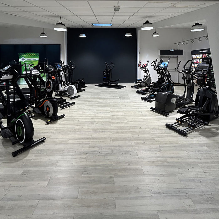 Explorez notre showroom pour essayer nos tapis de course, vélos elliptiques, rameurs, bancs de musculation, cages et vélos d’appartement...