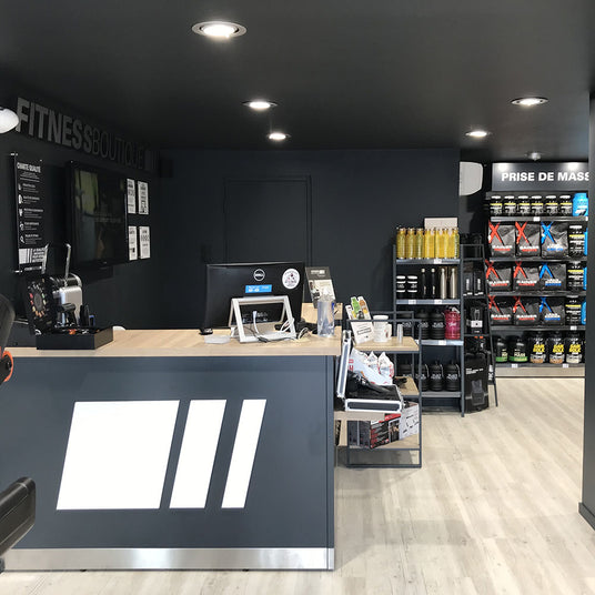 Votre magasin FITNESSBOUTIQUE de Toulouse Balma vous reçoit dans son showroom dédié au fitness, à la musculation et aux compléments alimentaires (proteine, whey, creatine, collagene, gainer, pre workout, bruleur graisses, BCAA...).